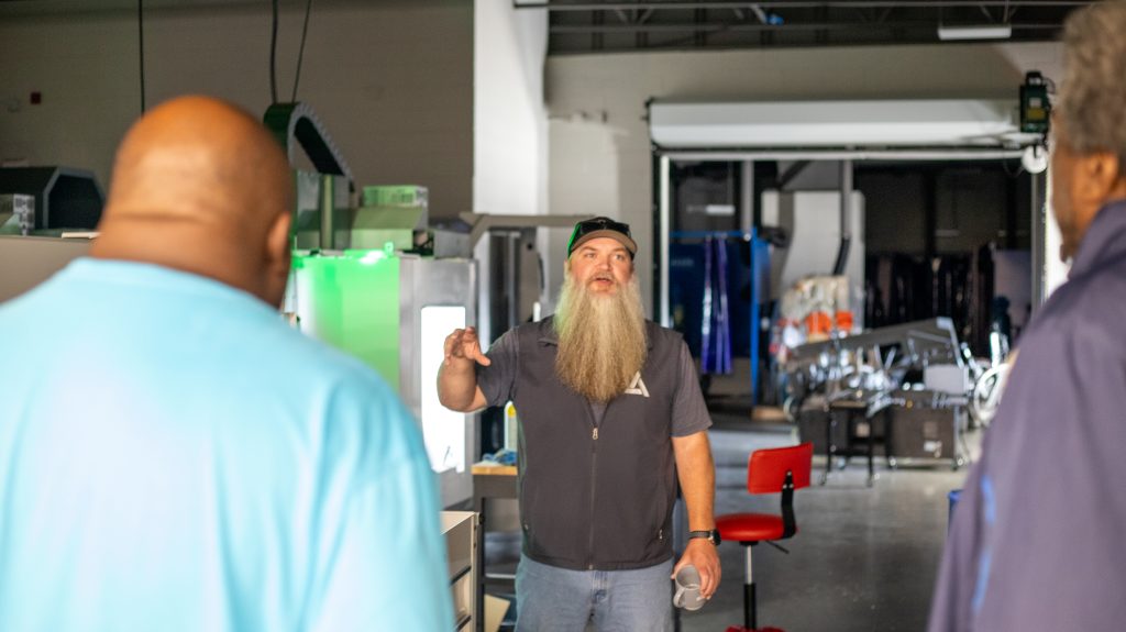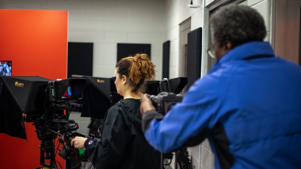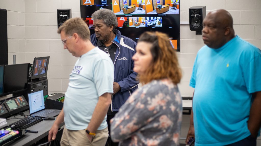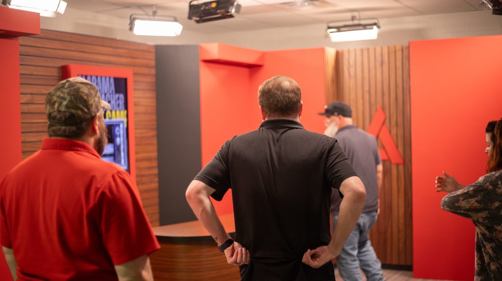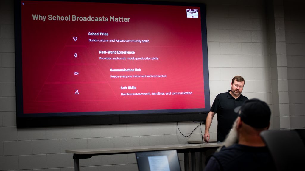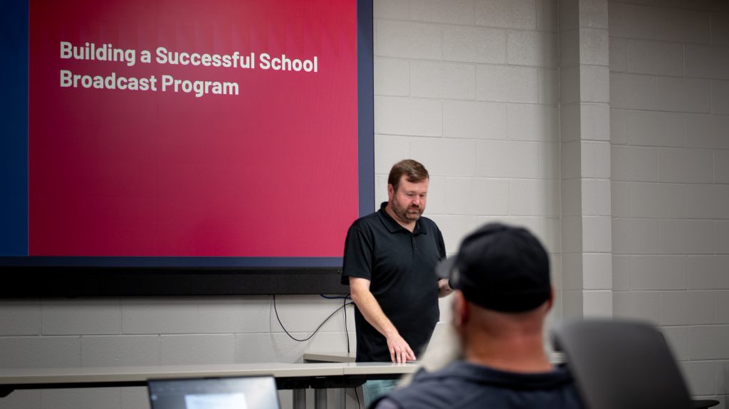 Brad Beasley from Russell County High School kicked off the event with his methods on building a news program that benefits the community. Helena High School’s Mark Hendren shared his favorite Adobe Premiere Pro workflows and teaching tips. Candace Finley from Oxford High School shared her unique grading methods and student portfolios. Billy Dunn from the Albertville Innovation Academy closed the day with a tour of the AIA facility and his studio. During the studio tour, Dunn showcased his student works.
