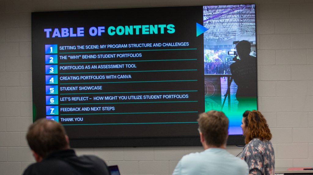 Friday morning started with Isaiah Harper from Tuscaloosa Career and Technology Academy showing how he selects and trains his award-winning broadcast team. The day closed with a conversation about scoring videos for contests and the attendees scored their project from the day before.